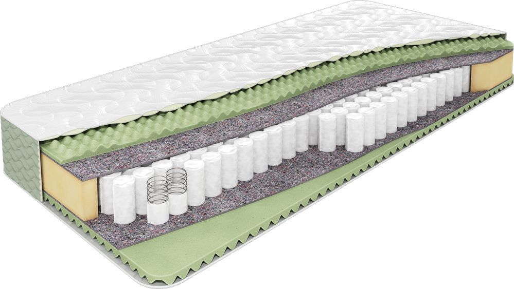 В составе матраса находится: массажная пена ErgoFoam с обеих сторон, обеспечивающая расслабляющий массажный эффект, пружинный блок TFK (система независимых пружин, каждая из которых заключена в отдельный чехол, что обеспечивает точечную поддержку тела, также пружины работают индивидуально, что снижает их износ и продлевает срок службы матраса. Чехол матраса выполнен из объемного простеганного трикотажа (ортопена), который придаёт приятные тактильные ощущения и хорошую воздухопроницаемость. Боковина из простеганной ткани букле добавляет элегантности и стиля.