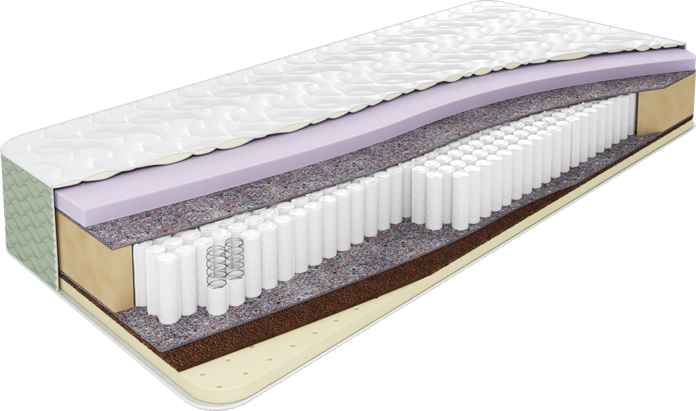 • Многослойный комфорт – сочетание латекса (30 мм.), кокосовой койры (10 мм.) и пенополиуретана (40 мм.) создает баланс упругости и мягкости.