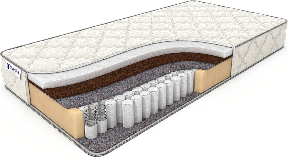 Жёсткость и ортопедический эффект на независимых пружинах. Основа конструкции данной модели – независимый пружинный блок TFK, препятствующий эффекту «цунами» - нежелательным колебаниям поверхности, обеспечивая крепкий, глубокий сон. Внешний наполнитель – холлофайбер, придаёт матрасу жёсткость, благотворно влияющую на состояние опорно-двигательной системы человека. Внутренний наполнитель – кокосовая койра, пропитанная латексом, делает поверхность более упругой и увеличивает прочность всей модели.