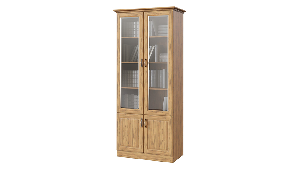 Классический шкаф библиотека Эдем с двумя створками выполнен из натурального массива дерева. Он станет идеальным дополнением вашего кабинета, ведь его оптимальный размер позволит навести порядок в ваших вещах и документах, но при этом он не займёт много места в комнате. А благодаря прозрачному стеклу с фацетом в дверцах шкафа останется визуально больше пространства и света в интерьере. В производстве использованы только качественные комплектующие, обеспечивающие плавное и бесшумное закрытие дверей. Подобрать изделие, идеально подходящее под ваш индивидуальный интерьер, вам позволит широкая цветовая палитра. Шкаф может быть изготовлен полностью из натурального массива дерева бука или ясеня. Даже полки шкафа сделаны из целостного массива, что делает вид шкафа более презентабельным и добротным. При желании немного удешевить изделие, мы можем изготовить боковины шкафа из ЛДСП. Обращаем ваше внимание, что такое решение никак не повлияет на визуальный вид товара. Внешние габариты библиотеки: 8 см. к ширине по внешним габаритам карниза. Требуется сборка.