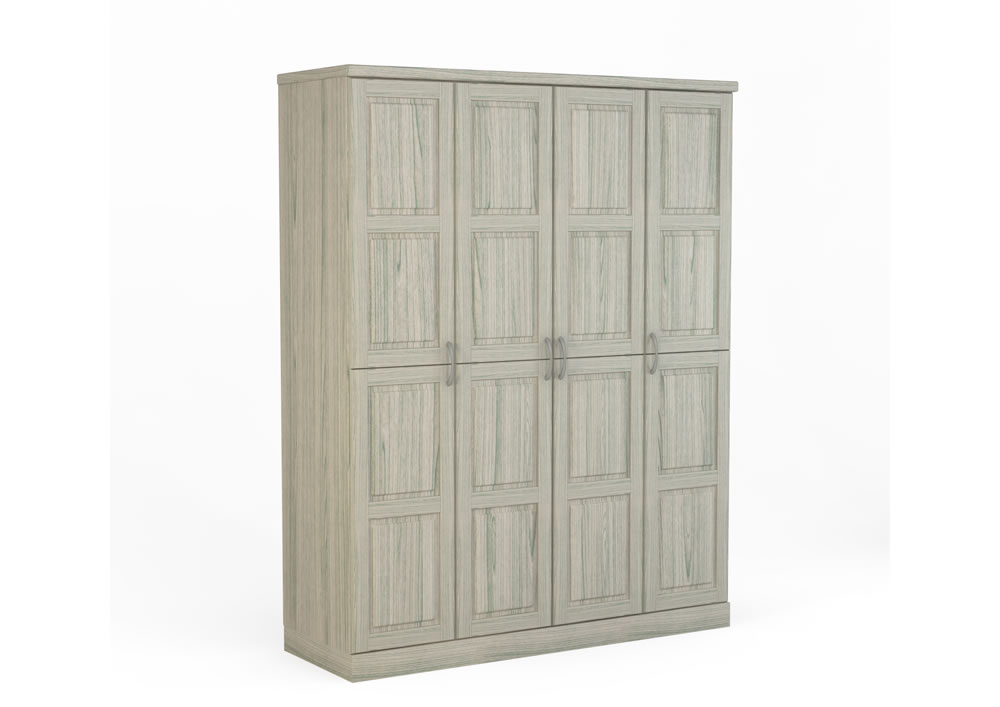 Стильный и функциональный шкаф, созданный в едином стиле с коллекцией мебели Варна — изделие без которого не возможно себе представить современный интерьер спальной комнаты. Корпус шкафа изготавливается из массива бука, ясеня или из цельноламельного щита мягколиственных пород древесины, что делает его стоимость еще более демократичной. Фасады шкафов — это единые по высоте шкафа створки филенчатой конструкции, разделенные на 4 визуально равные части, которые могут иметь встроенные зеркала как на лицевой части фасада — по размеру филенчатой части, так и на внутренней стороне фасада. Стандартно предусмотрено две комплектовки шкафа: с антресольной секцией вверху (4-3) или внизу (4-1).