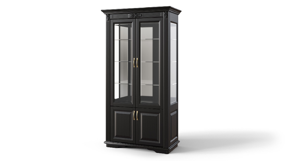 Одностворчатые, двухстворчатые и трехстворчатые витрины для гостинной «Палермо», изготовленные из массива бука или ясеня со стеклянными боковыми стенками и фасадами рамочной конструкции со стеклом, обработанным фацетом. Витрина имеет четыре стеклянные полки, задняя стенка имеет в своей конструкции два соединенных зеркала, которые делают интерьер более легким и изысканным. В базовой комплектации витрины оснащаются выкатными ящиками или опционально под заказ - распашными створками. Изысканная классика — вот стиль витрины и интерьера «Палермо». Требуется сборка.
