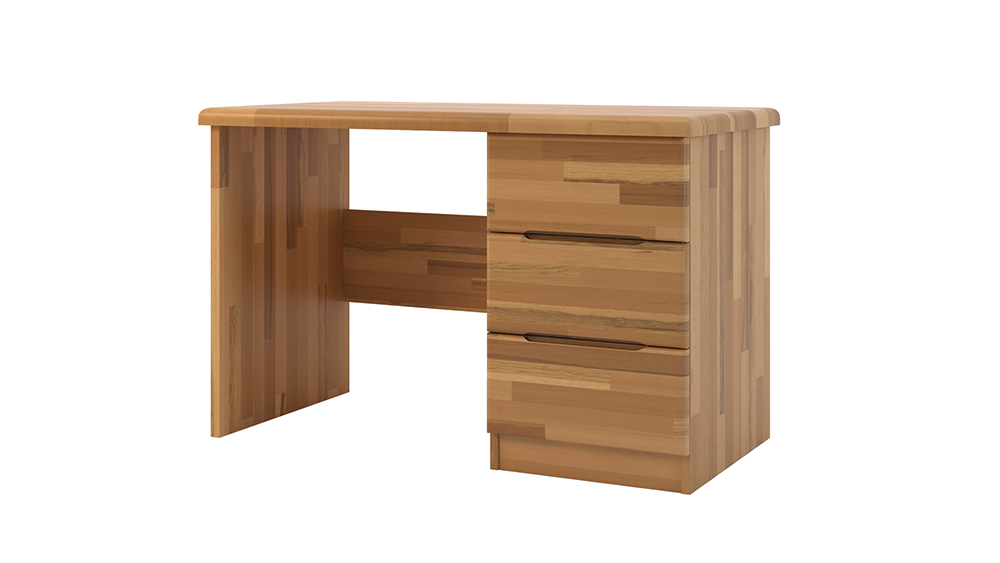 Стол Мальмо создан из прочного, устойчивого массива бука. Бук имеет уникальную окраску с природным рисунком. Неповторимая текстура и цвет отлично сочетаются с любым интерьером, создают тепло и уютную атмосферу. Рабочий стол оснащен тремя выдвижными ящиками с ручками, которые вырезаны в самом изделии. Ящики плавно открываются и закрываются. Стол выполнен в минималистичном стиле и впишется в дизайн как рабочего кабинета, так и спальни. Сборка не требуется.