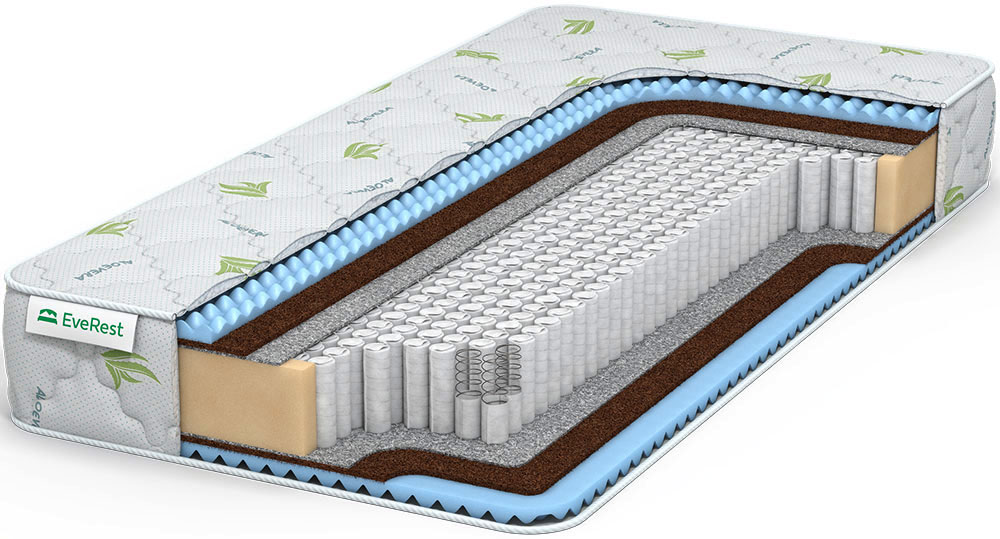 Данная модель матраса выполнена на основе блока независимых пружин, которые обеспечиваю спящему ортопедический эффект и обладает массажными свойствами. Относится к моделям средней жесткости. В качестве наполнителя в нем использован вспененный материал Ergo Foam и койра. В основе модели лежит блок MultiPocket S1000 из микропружин (500 пр./кв.м). Каждая из них упакована в индивидуальные чехлы. Умеренную жесткость матрасу придает природный наполнитель — койра кокоса, изолированная от пружин войлоком. Мягкость и легкий массажный эффект с двух сторон спальному месту обеспечивает рифленый пенополиуретан Ergo Foam. Чехол выполнен из прочного хлопкового трикотажа с антисептической пропиткой AloeVera.